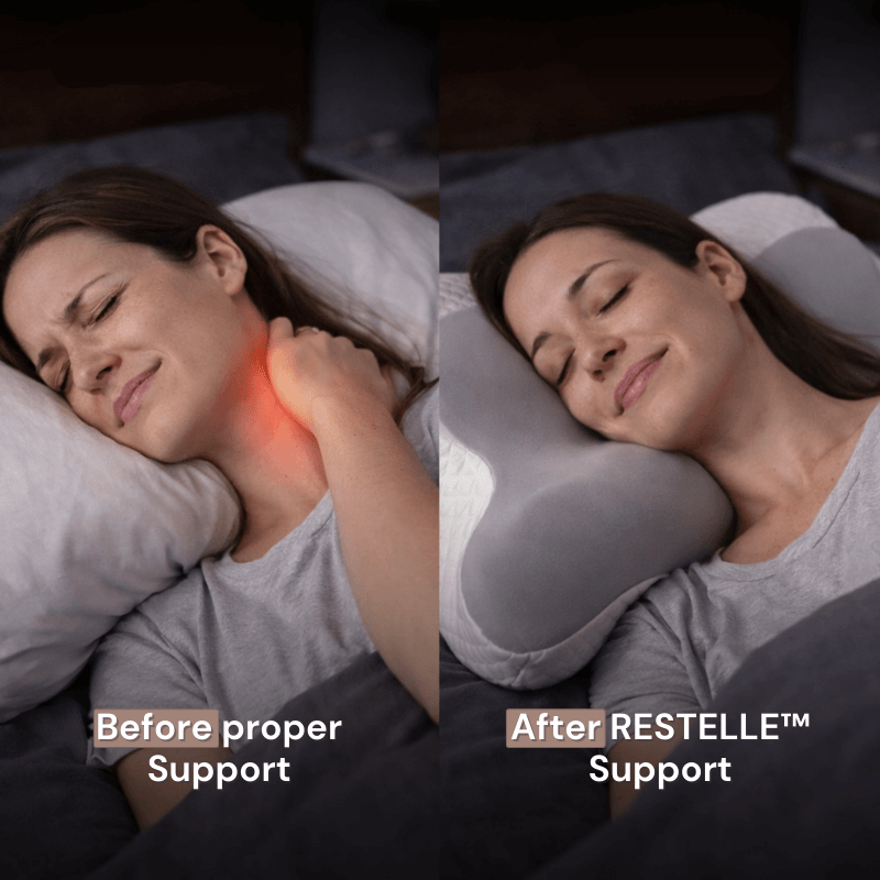 With proper support and spinal alignment, the Restelle™ Luxe Contour Pillow helps you fall asleep faster, stay asleep longer, and wake up fully restored, energised, and ready to start your day!